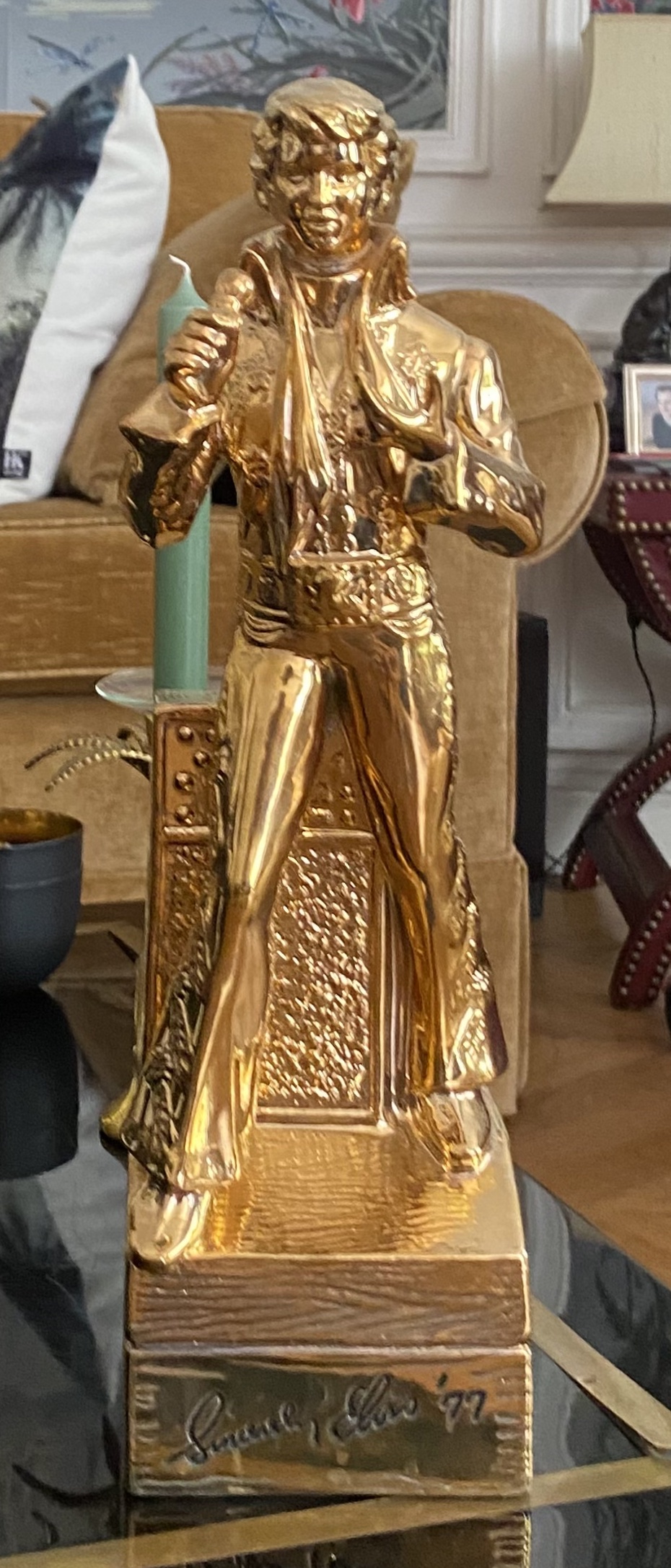Gold statue of Elvis Presley displayed in my mother’s living room